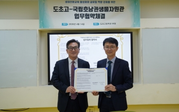 전남 신안 도초고등학교(교장 전인재)는 지난 4월 14일(화) 국립호남권생물자원관과 지역 특화 교육과정 운영을 위한 업무협약(MOU)을 체결했다.