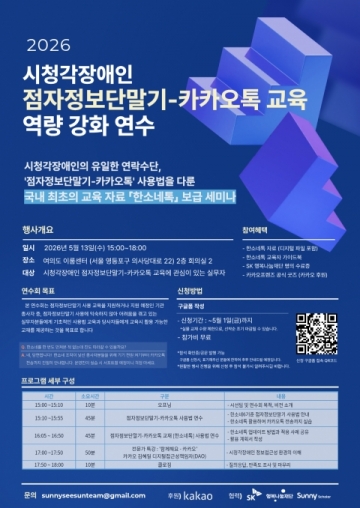 대학생 사회 문제 해결 교육 프로그램 ‘Sunny Scholar’ 4기를 통해 탄생한 ‘시선팀’이 5월 13일 ‘시청각장애인 점자정보단말기-카카오톡 교육 역량 강화 연수회’를 개최한다고 4월 22일 밝혔다.