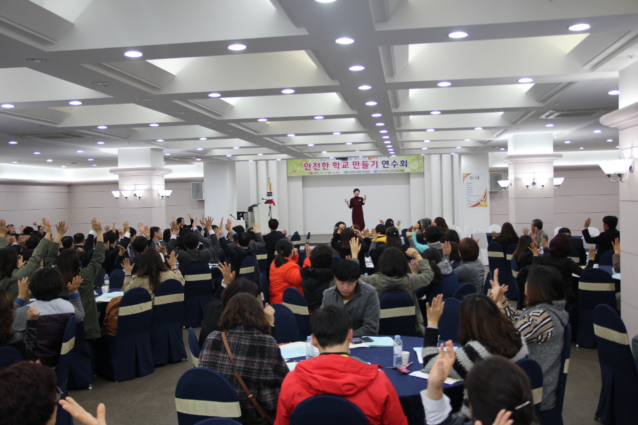 경상북도김천교육지원청(교육장 장태덕)은 11월 17일(화) 김천파크호텔에서 관내 초·중학교 교장, 교사, 녹색어머니회 및 학부모회 회원 300여 명이 참석한 가운데 '2015 안전한 학교 만들기 연수회'를 개최했다.
