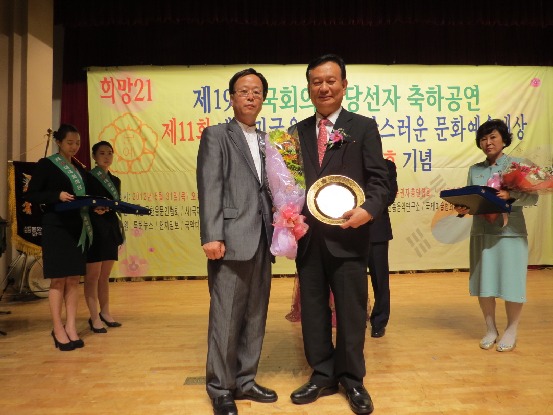 송 교수는 지난 5월 31일 오후 5시 국회의원 회관 대강당에서 사단법인 한국문화예술유권자총연합회(총재 서정태)가 주최한 ‘대한민국을 빛낸 자랑스러운 대상’ 시상식에서 이 상을 받았다.