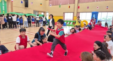총 2부로 구성된 ‘계산 교육가족 한마당’은 유치원생부터 6학년까지 전 학년이 청군과 홍군으로 나뉘어 경쟁하는 형태로 진행됐다. 1부는 ‘지구를 옮겨라’, ‘태산을 넘어라’, ‘지네 발 협동 이어달리기 등 협동 중심 종목으로 구성돼 전교생이 하나 되어 협력하는 장면을 연출했다. ‘한마음 사다리’와 같이 학부모가 참여하는 종목은 행사장을 더욱 화기애애하게 만들었다. 아이들의 웃음과 학부모들의 응원이 체육관을 가득 메우며, 교사와 학생, 학부모가 함께 한마음으로 뛰는 진정한 공동체 체험의 장이 됐다.