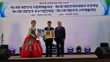 제18회 세계인의 날을 맞아 (사)한국다문화예술원(이사장 박대홍) 주관·주최로 제14회 대한민국다문화예술대상, 제13회 대한민국우수기업인대상, 제11회 대한민국스타예술대상, 그리고 처음 선보인 제1회 대한민국마약퇴치보건대상 시상식이 6월 25일 오후 2시 부산일보 10층 대강당에서 성료됐다.